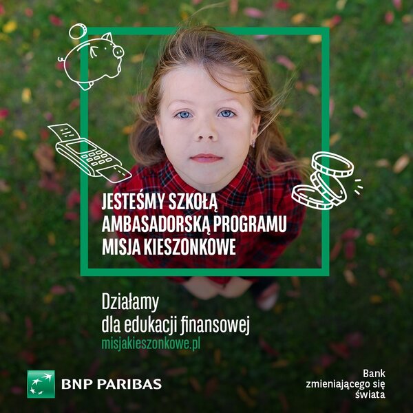 19 stycznia 2024 Aktualności Program edukacyjny "MISJA KIESZONKOWE" Uczniowie klasy 2a i 3a przystąpili do realizacji programu edukacyjnego "Misja Kieszonkowe" organizowanego przez BNP Paribas. Szkoła otrzymała Ambasadora Programu oraz nauczyciele. Celem programu jest... Czytaj więcej