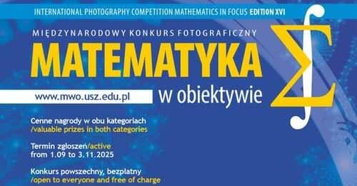 27 października 2025 Aktualności Międzynarodowy Konkurs Fotograficzny „Matematyka w... Nauczyciele matematyki zapraszają wszystkich chętnych uczniów, dorosłych do udziału w Międzynarodowym Konkursie Fotograficznym MATEMATYKA W OBIEKTYWIE.Ostateczny termin przesyłania prac - 3 listopada... Czytaj więcej
